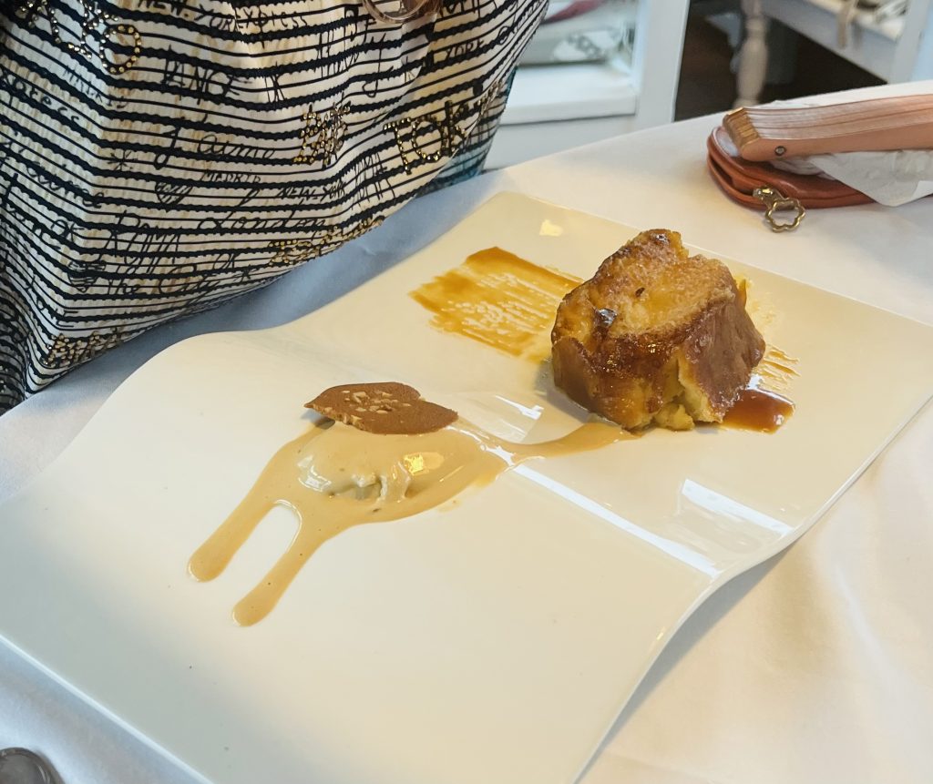 A una riquísima torrija, con helado de canela.