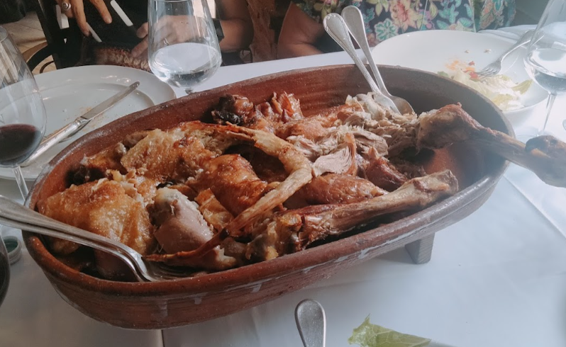 Los platos fuertes de esta zona de Castilla, el cochinillo y el cordero, los bordan. Ya que aquí tienen el auténtico Lechazo Asado con denominación de origen Castilla y León elaborado en horno de leña.