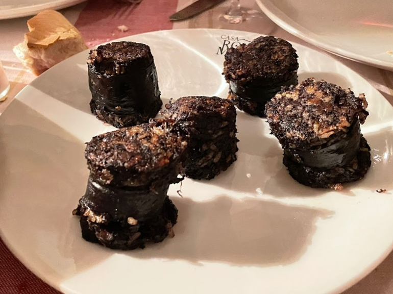 Croquetas caseras y la llamada, morcilla de Burgos.