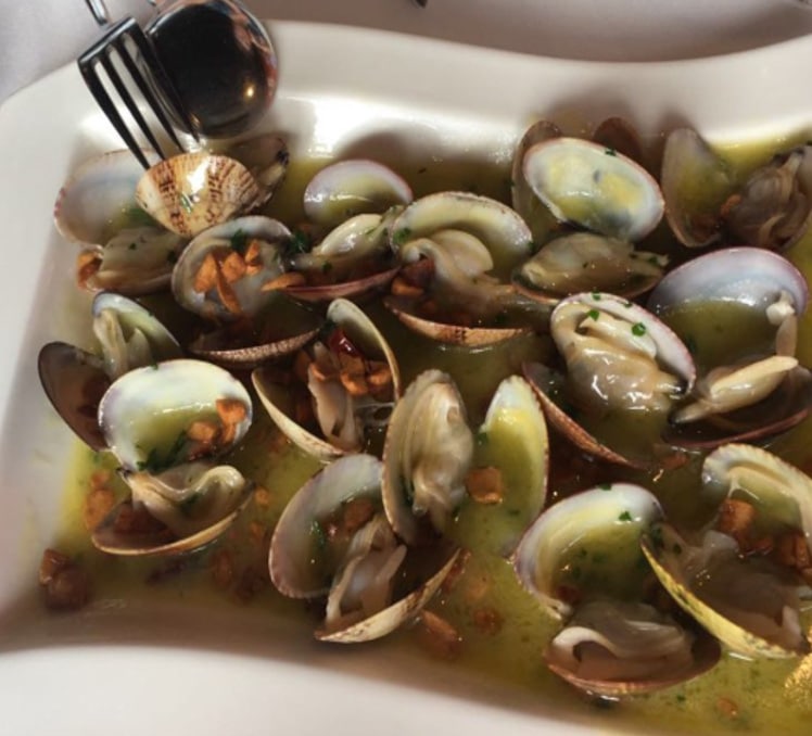 Además del marisco, tienen otros entrantes, todos ellos sencillos y muy ricos, como la ensalada de ventresca, el revuelto de hongos, el foie con tostas o sus pochas con almejas.