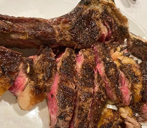 En el caso de la carne es distinto, ya que lo único que suelen poner es el chuleton a la brasa, eso si, buenísimo y hecho de forma magistral.