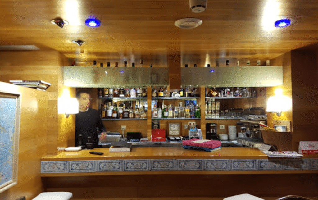 Según entras, te encuentras a la derecha, con una pequeña barra donde poder tomar algo mientras esperas. De aquí pasas al comedor de la planta baja, situado a la izquierda.