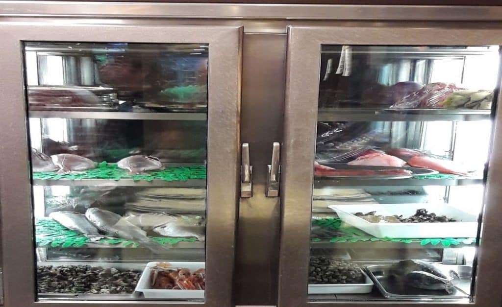 Según entras, te encuentras con la barra y a mano izquierda una nevera vitrina, donde ya empiezas a ver que aquí las cosas las hacen con fundamento y a la derecha un vivero de mariscos, con una muestra de pescados y mariscos que normalmente es impresionante, Tienen mucha demanda de mesas, ya que el comedor no es muy grande, por eso dan comidas en las mesas del bar y si no os dais prisa, seguro que las tendrán reservadas.