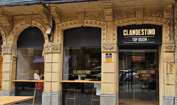 Al Clandestino, entramos por el bar, que está muy bien provisto de grifos, en lo que llaman un Tap Room o sala de grifos. En el mismo bar hay una zona de mesas altas, donde poder degustar platos sencillos, como patatas bravas caseras, hamburguesas, nachos, pintxos,etc.