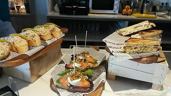 Como decía antes, muy buena barra de pintxos, unas ensaladas muy ricas, y como digo yo, divertidas.Un picoteo amplio y bueno. Tiene unas carnes muy buenas que te preparas a tu gusto, hamburguesas, etc.
