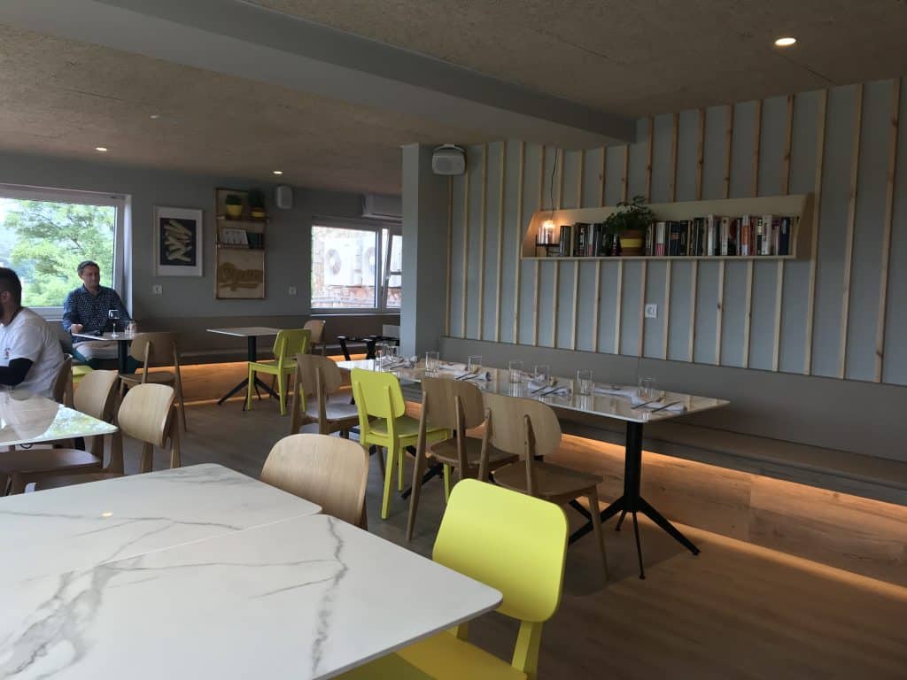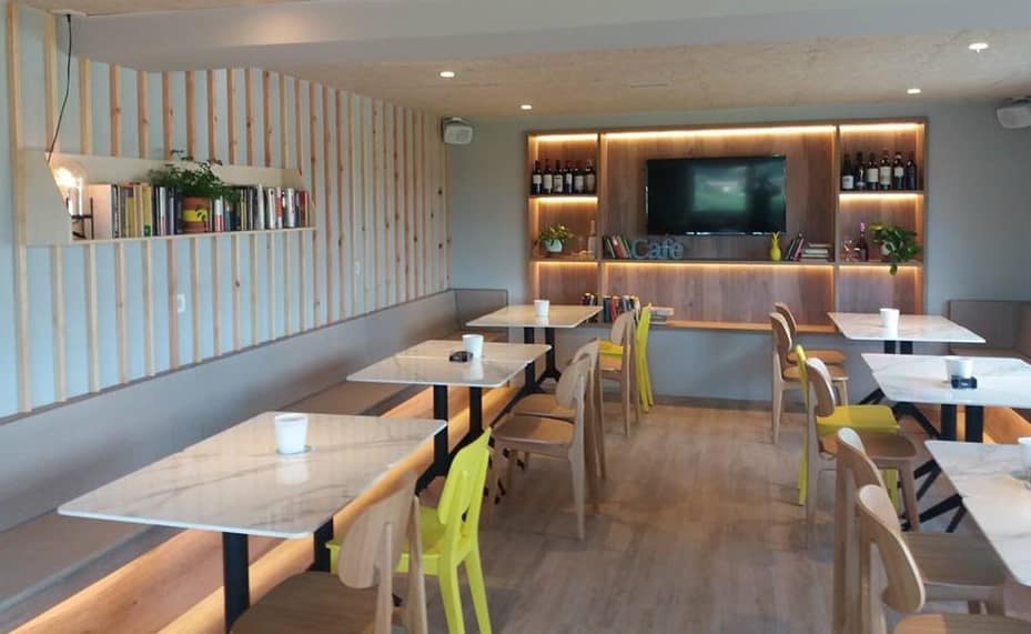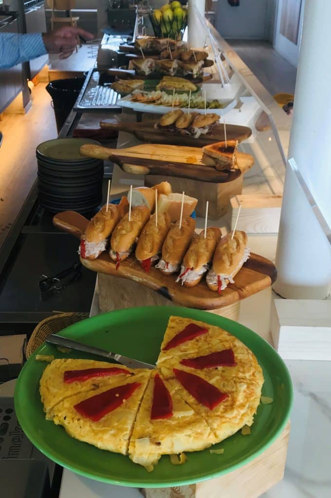 Nada más entrar te encuentras con la barra del bar repleta de pintxos, y a mano derecha un pequeño espacio donde poder tomar un café o una copa con amigos.