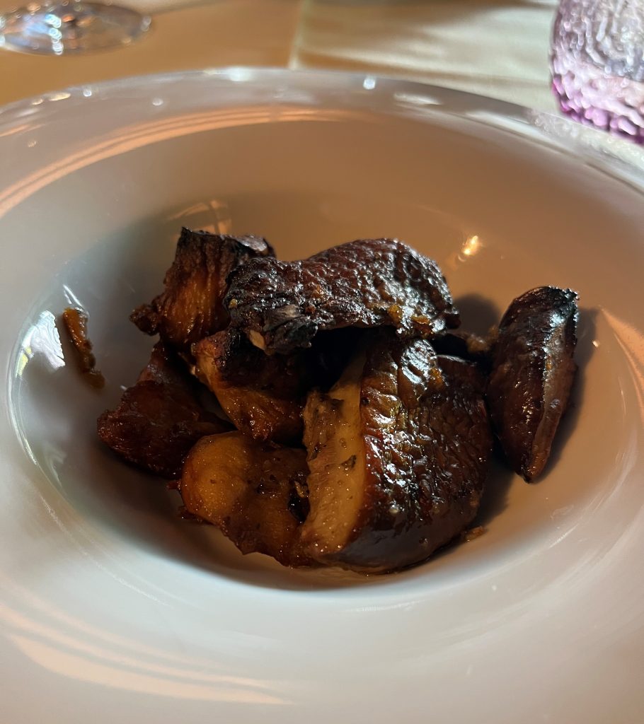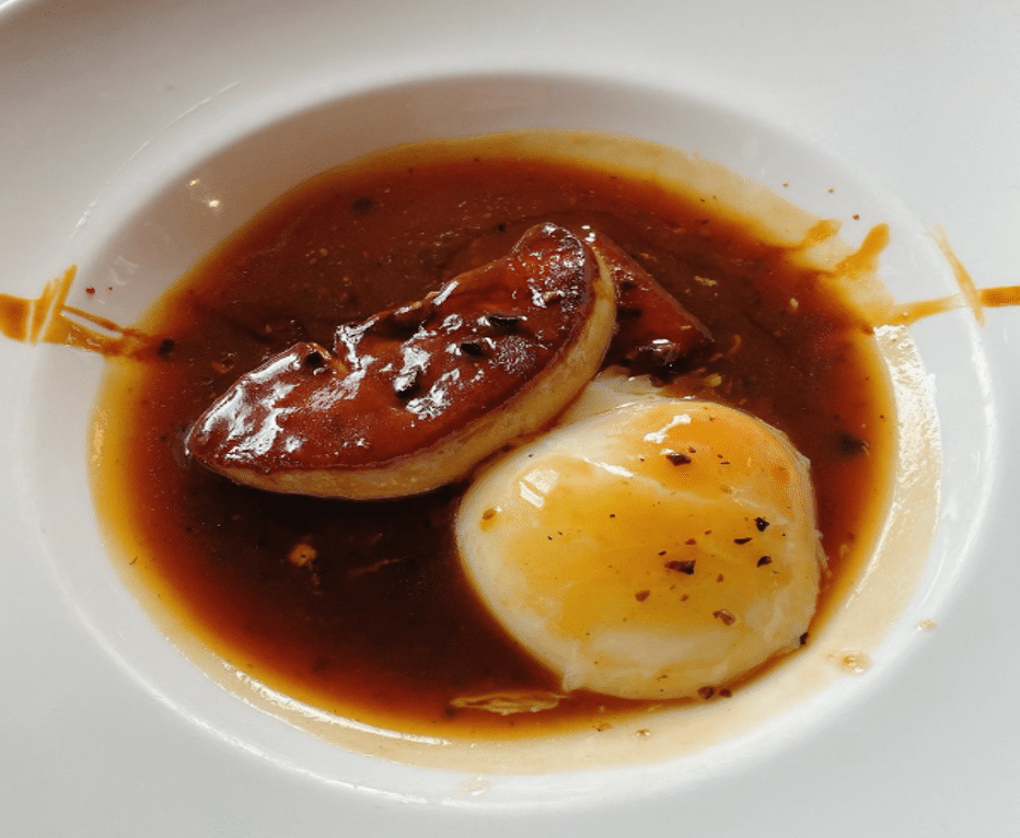 Hacen muy ricos revueltos de hongos y setas en temporada, como los perretxicos o Ziza como llaman en Gipuzkoa. Pero mi plato favorito sin ninguna duda es el Huevo Perigourdine, que es un plato absolutamente de 10. Si no lo ves en la carta, pídelo porque si pueden te lo prepararan.