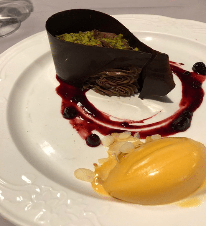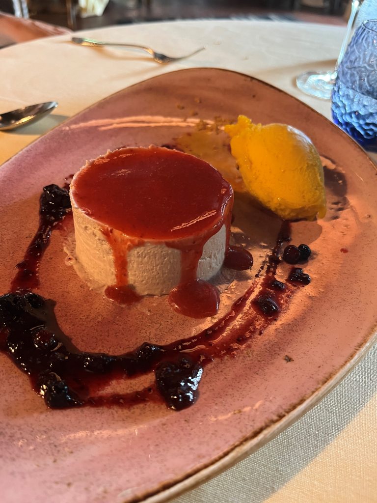 Ahora tienen una Mousse de plátano y fresas con sorbete de mango, realmente celestial.