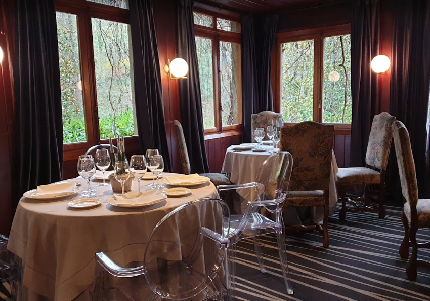 La decoración es clásica, pero muy muy acogedora, con sus maderas y telas te envuelven en un ambiente realmente elegante y relajante. Nada más llegar puedes tomar un txakoli en la pequeña y antigua barra que da acceso al comedor.