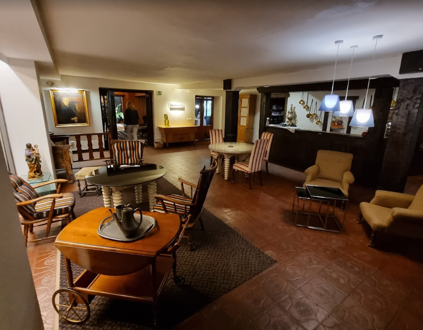 Tiene su propio parking donde caben bastantes coches, de ahí pasas directamente al hall de entrada. Nosotros pasamos al comedor habitual situado a la izquierda, y digo esto, por que disponen de varios comedores, para todo tipo de celebraciones y eventos, con capacidad para unas 400 personas.