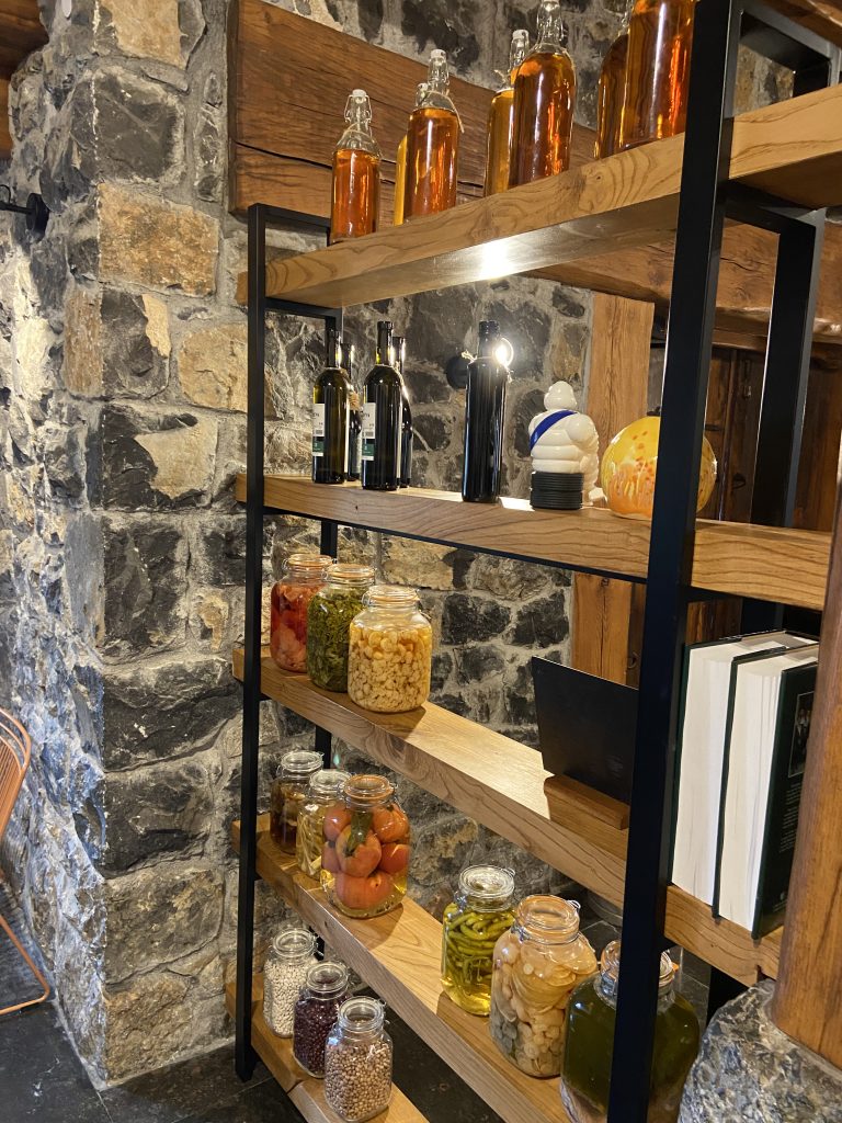 Tienen unos expositores, donde podemos ver los productos de la zona, con los que trabajan. Y su propio txakoli, el “Garena” y el “Geroa”, que los ofrecen a muy buen precio.