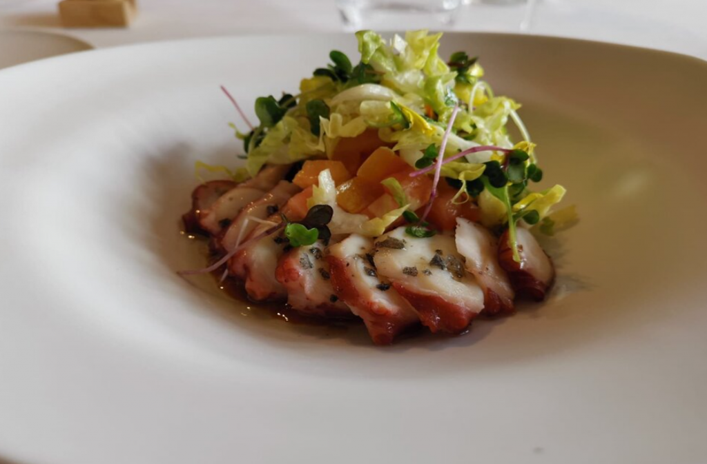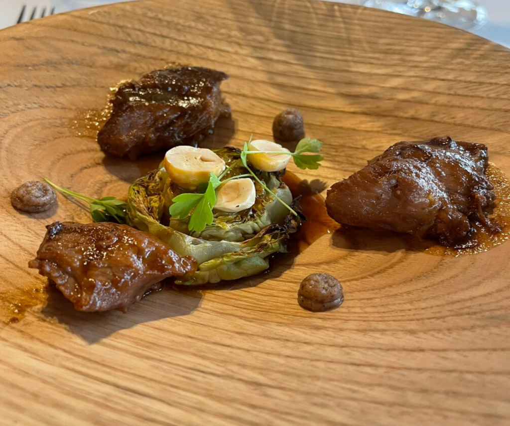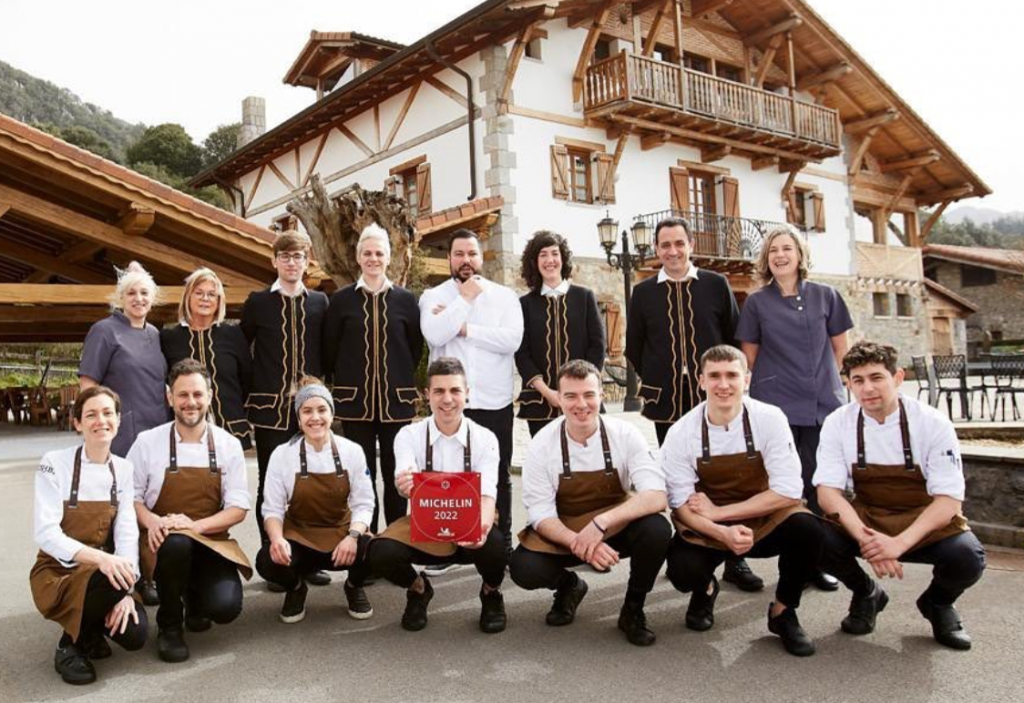 El chef Julen Baz trabaja una carta vasca tradicional y creativa, donde no faltan los platos a la brasa. Tienen un gran menú degustación llamado Geroa, al cual, ellos mismos lo califican, como un viaje gastronómico en el tiempo, que recorre 500 años de nuestra historia. Tienen también un menú de mercado (laborables al mediodía), donde te ofrecen los mejores productos de temporada y de cercanía, o km 0.