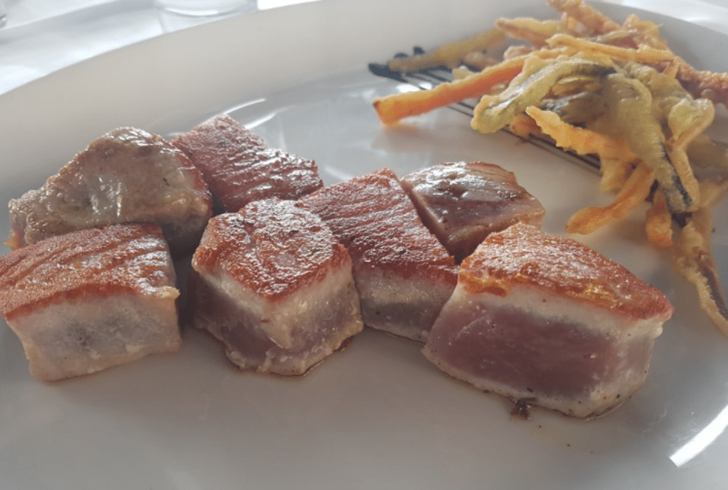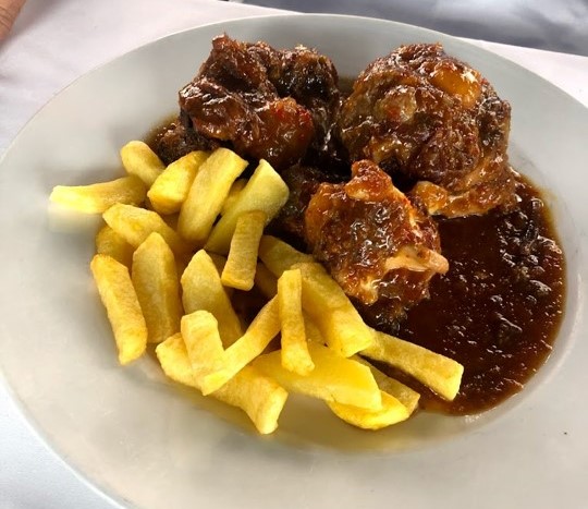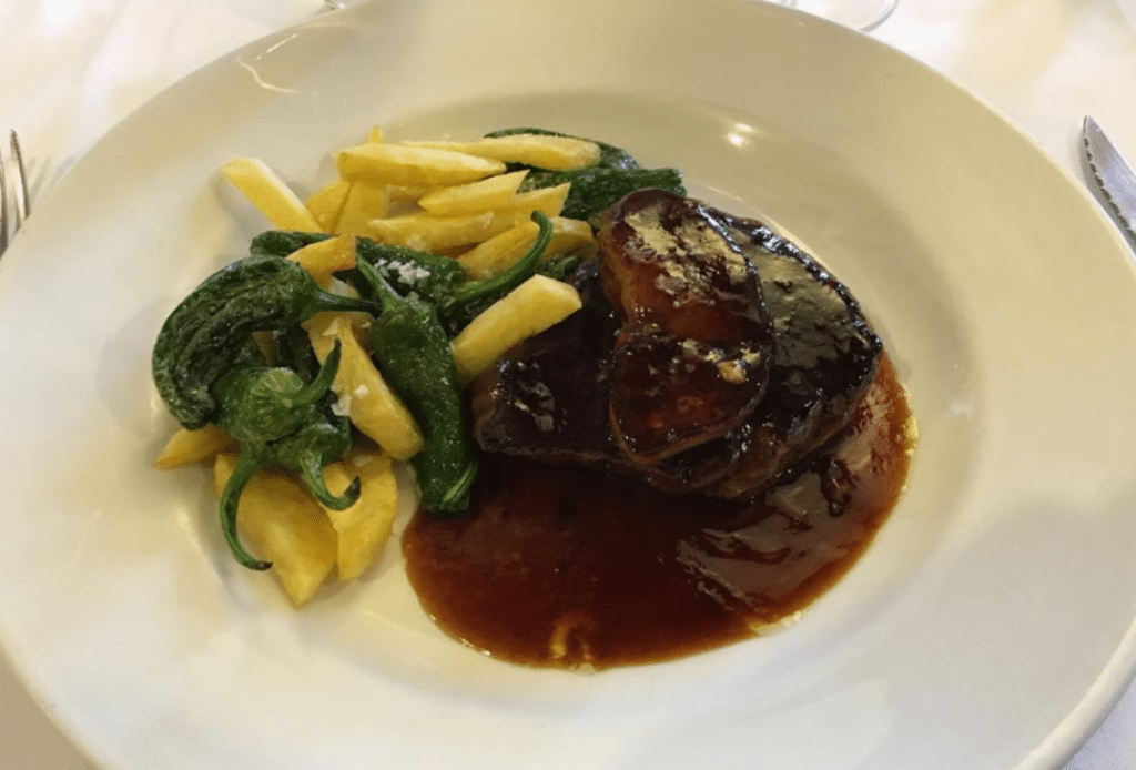 Las carnes también de calidad, donde reina el chuletón de carne roja, o el solomillo de vaca al foie y sus guisos,como el rabo de toro estofado.