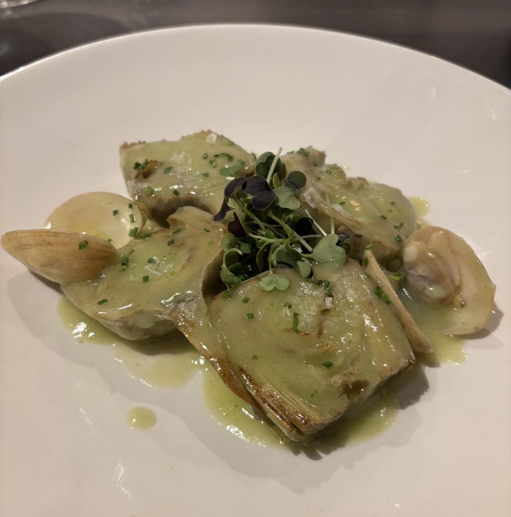 Fuera de carta, tienen siempre algún plato que ofrecerte, basado siempre en mercado y temporada. Como ejemplo, unas ricas alcachofas con almejas, o un rico salpicón de marisco.
