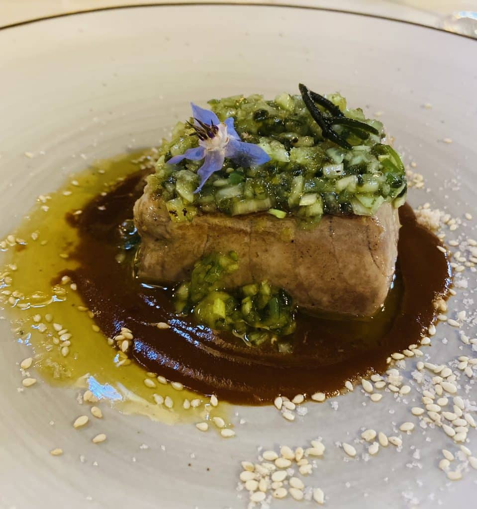 Pescados variados y muy bien preparados, como este tataki de atún, y el taco de atún con salsa bizkaina y semillas de sésamo.