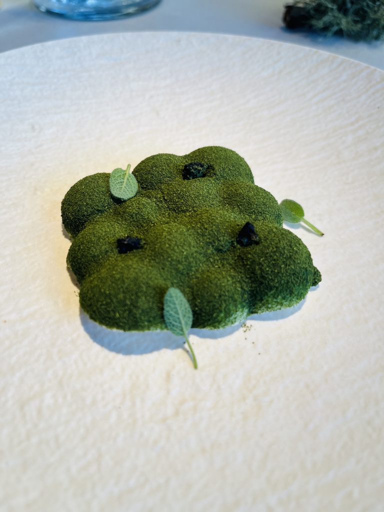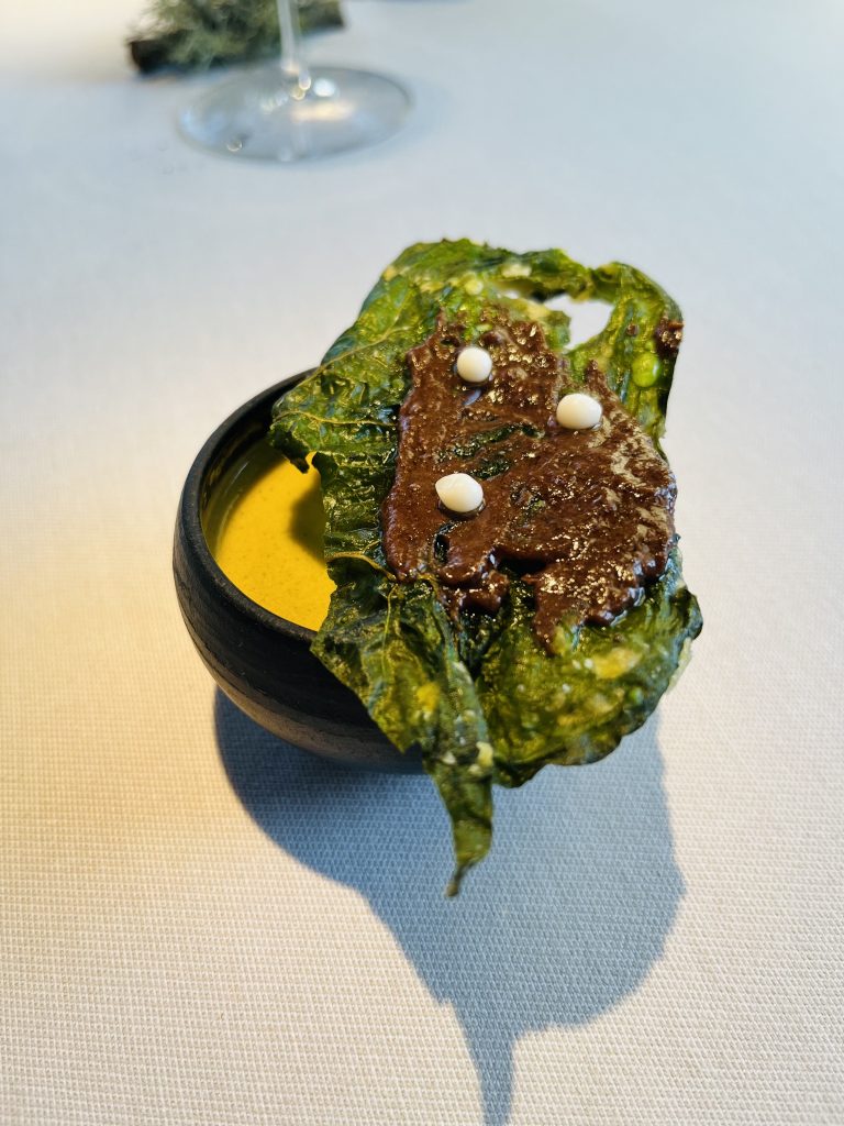 Otro plato realmente fantástico es el llamado, simplemente Asturias. Consiste en una untuosa crema de queso gamoneu, recubierto con berza liofilizada.