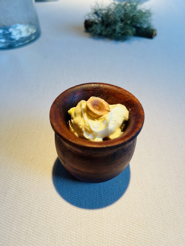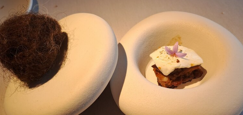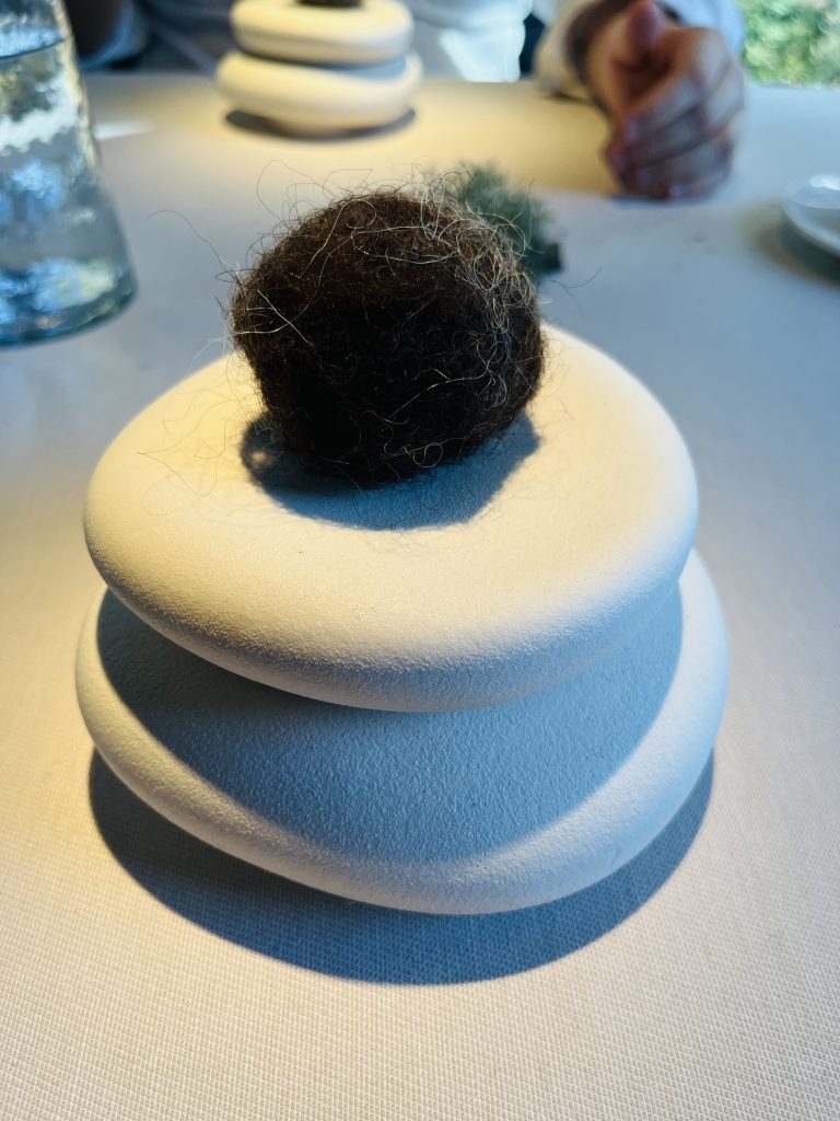 Más evocaciones a Asturias y sus referentes, en este caso las ovejas, y más concretamente a la oveja Xalda, autóctona del Principado de Asturias. Así que el plato se llama Lana Xalda.