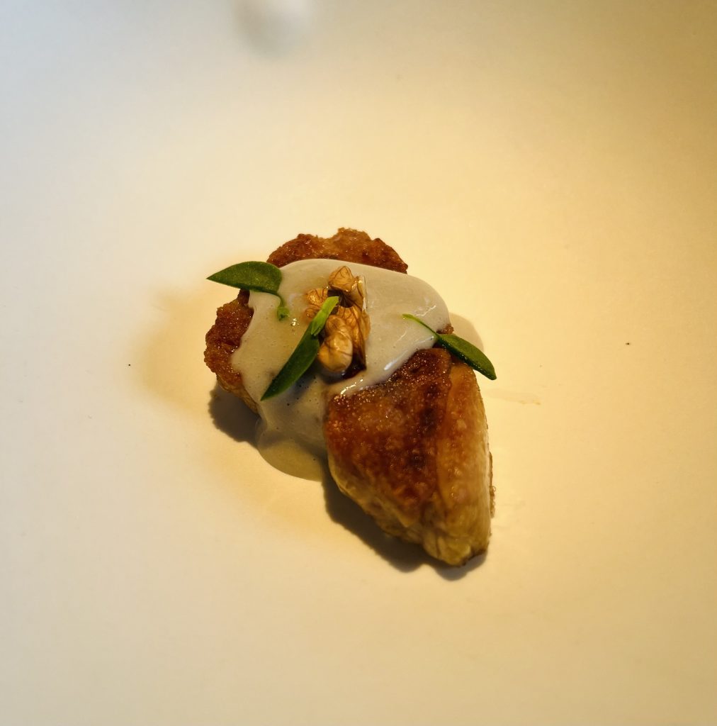 Aquí Menazuela del Eo. Otra evocación a Asturias y más concretamente al concejo del Eo – Navia, y sus pollos, ya que se trata de molleja de pollo.