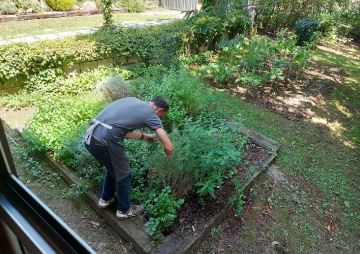 En la entrada del restaurante, pedro tiene su propio huerto, con una buena cantidad de diferentes plantas, que después utiliza en sus numerosos platos.