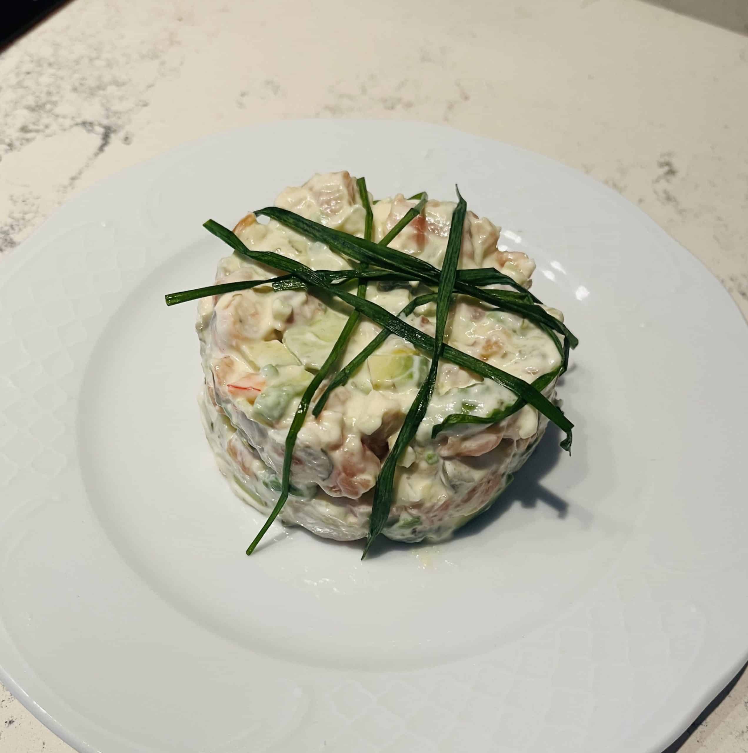 Ensaladilla de Salmón y Langostinos con salsa Tártara