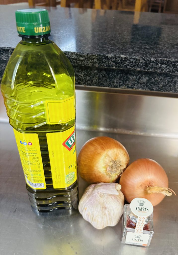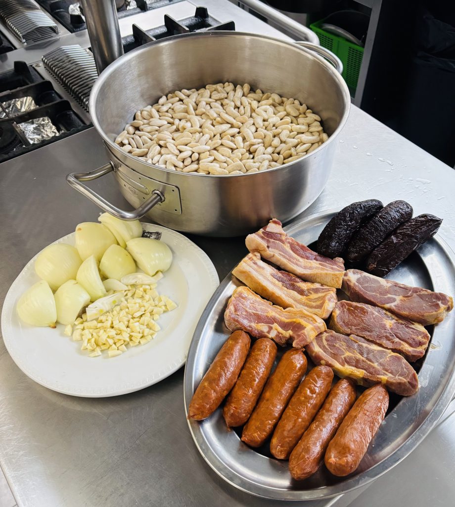 Preparamos los ingredientes. En este caso iniciamos el proceso el día anterior. Ponemos a remojo las fabes el día anterior, o durante 8 horas, y descartamos el agua al prepararlas para su cocción.