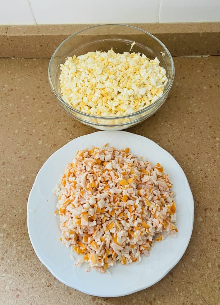 Picamos los huevos también a cuchillo. Nos lleva mucho más tiempo, pero el resultado final es infinitamente mejor.
