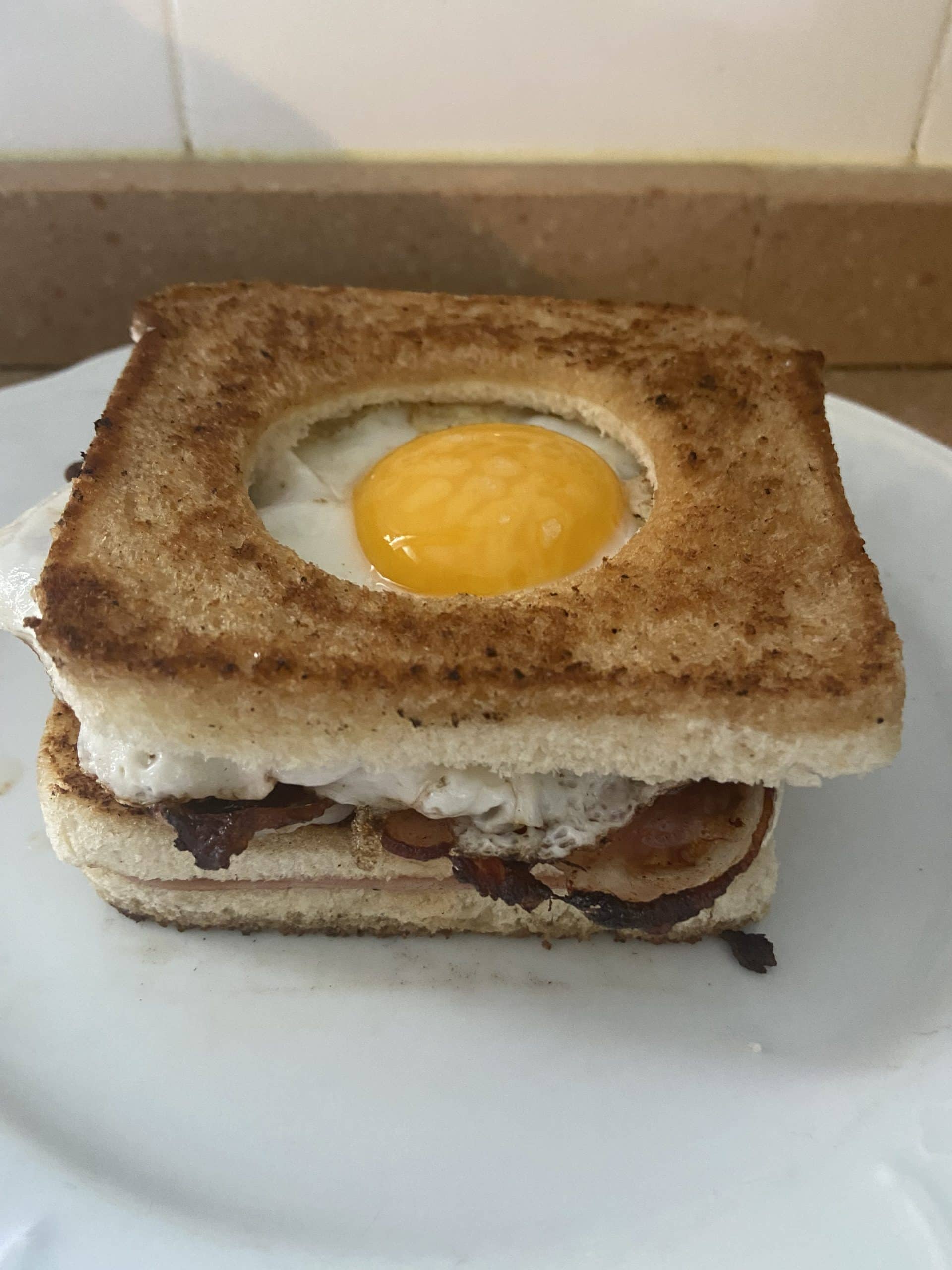 Este sándwich, resulta de la unión de 2 platos que a mis hijos de pequeños les encantaba. Por un lado el sándwich mixto tradicional, y por otro los huevos con bacon. Existen diferentes versiones, pero a ellos les gustaba, tal cual veréis en la receta. Tanto es así que decidieron llamarle, Sándwich Gerardetxe, en honor a su aita, que es el que suscribe.