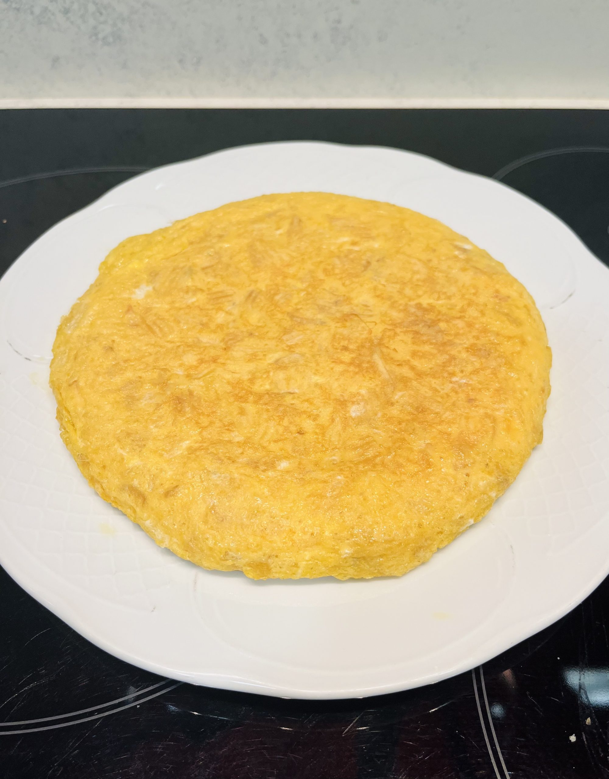 Sacamos la tortilla de la sartén, y ya la tenemos.