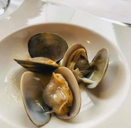 Las kokotxas o las almejas naturales de Carril a la brasa, de lujo, y así con cualquier entrante.