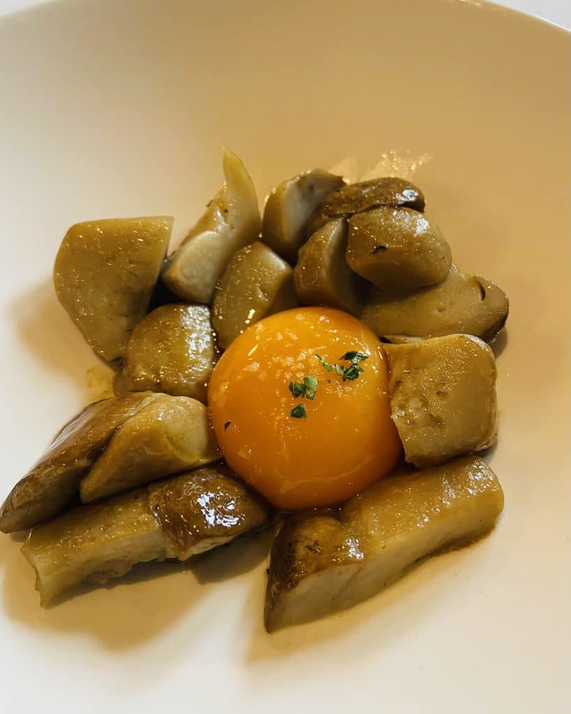 Unos ricos hongos a la brasa, con yema de huevo.