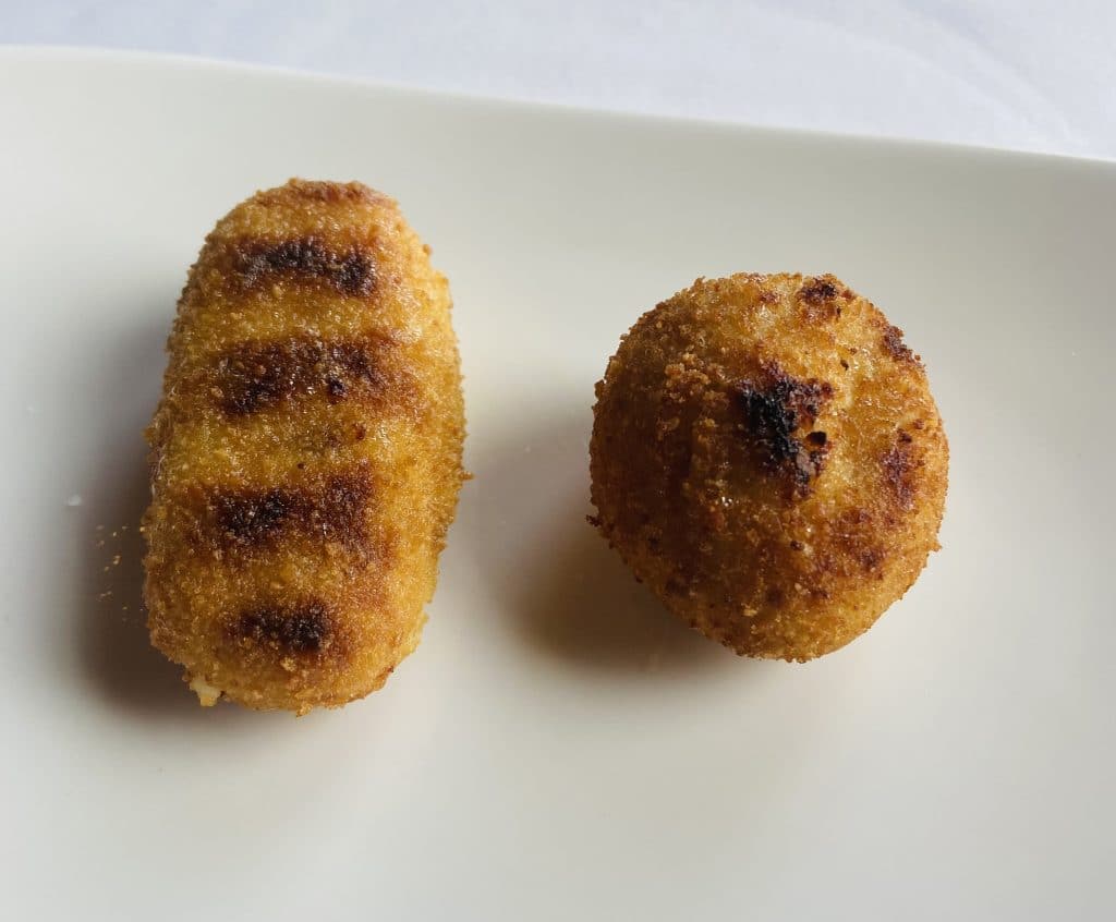 Unas ricas croquetas de jamón Joselito y pollo de corral, a la brasa.