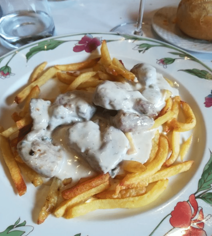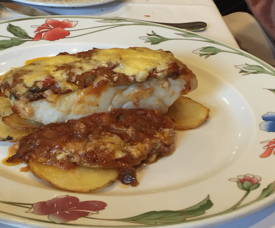 En la carta, además de sus carnes asadas, ofrecen una variedad de pescados, y una gran cantidad de postres caseros. Pero yo según me siento no puedo evitar pedirle a Cuco que me traiga un plato de sus cortezas finas y crujientes de papada, algo realmente divino.