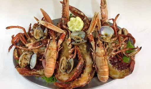 Te pueden ofrecer mariscadas completas, o cigalas cocidas o plancha. Muy buen quisquillón o percebes.