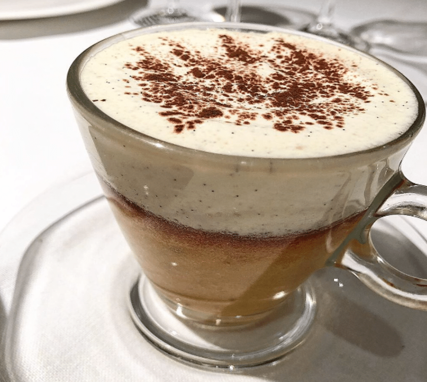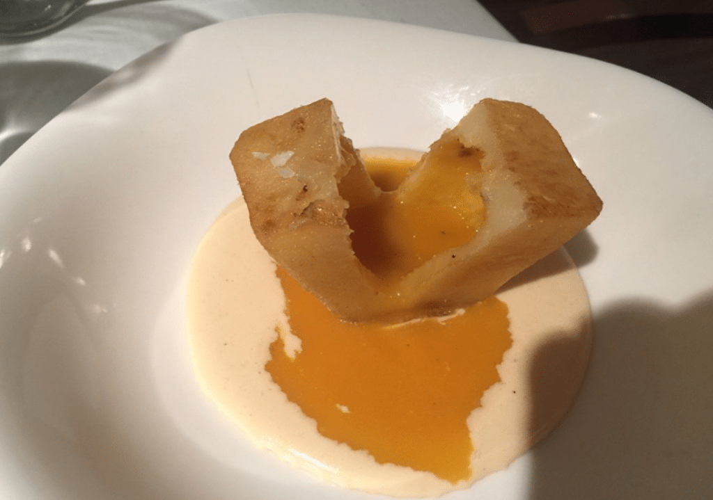 Su famosa interpretación de Tortilla de patata y trufa con natilla de cebolla.