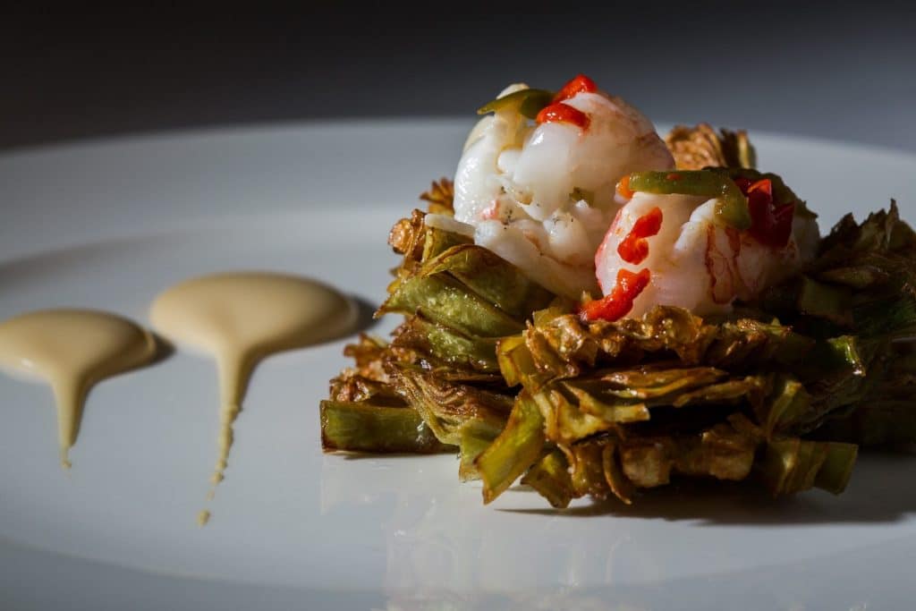 Ostra de Marennes con lentejas y jalapeño. Tibia y untada con una deliciosa crema de lentejas, o la Lasaña de bogavante con marinera de hinojo y jengibre.