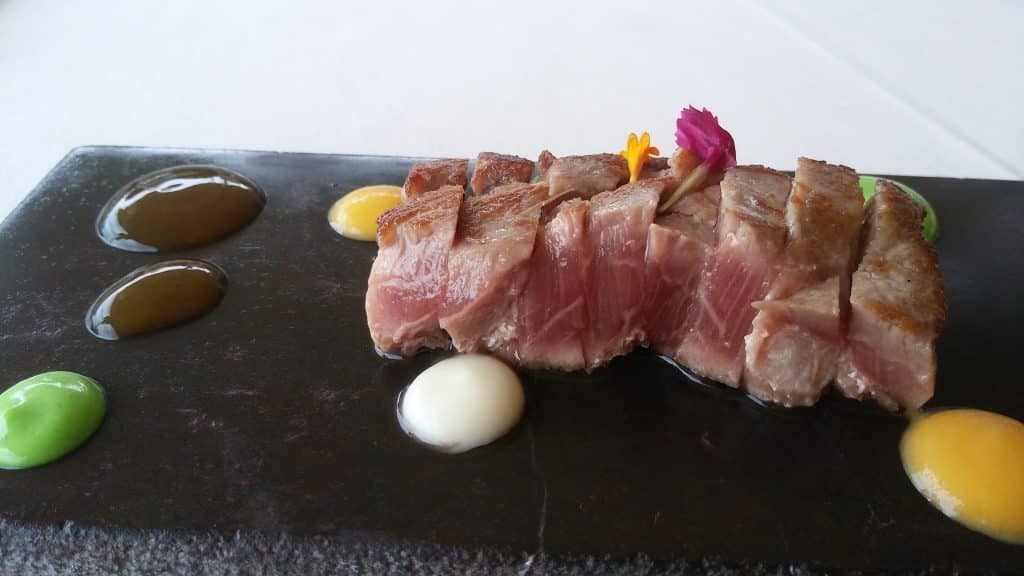 En el Tamarises podemos encontrar un Tartar de carabineros y licuado de gambas muy atractivo, un huevo de caserío escalfado con panadera de hongos y foie fresco, un rico Tataki de atún rojo, o un arroz cremoso sabroso de verdad.